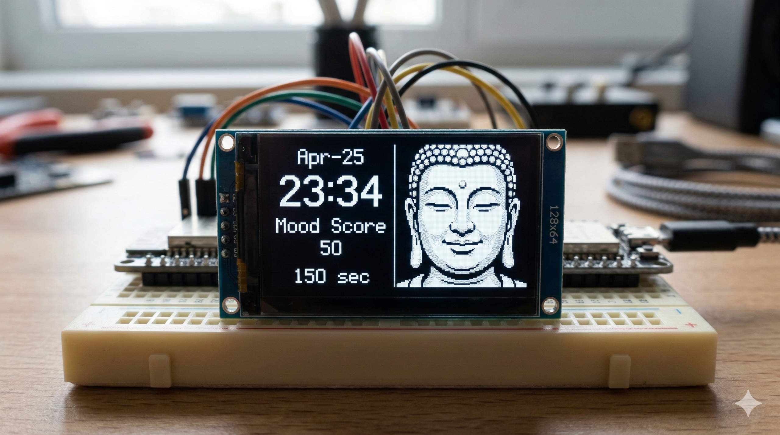 ついに、Gemini APIとESP32が繋がった。 私の失言や善行をGAS(Google Apps Script)が拾い上げ、AIがそれを「機嫌」としてスコアリングする。そして、ブレッドボード上の小さなOLEDには、AIの機嫌を象徴する「仏」が降臨した。